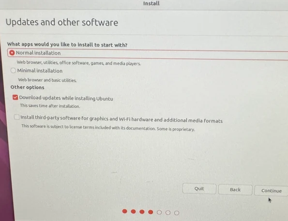Select normal installation and proceed to the next step