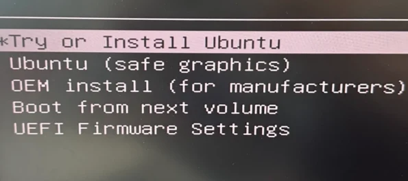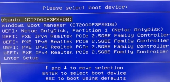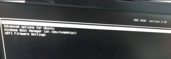 After saving and exiting, the following interface will appear. Select Ubuntu and press Enter to enter the Ubuntu system.