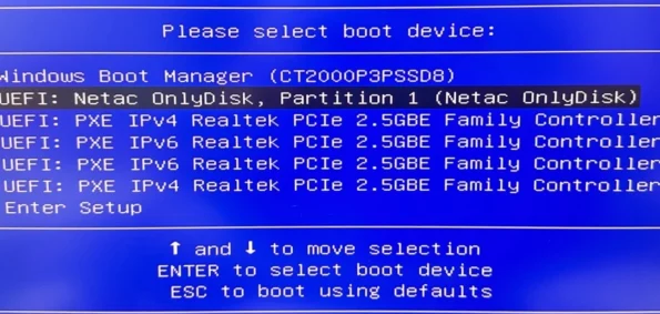 After the above process is completed, we will enter the formal installation phase. Insert the USB drive into the machine where the system is to be installed, press the power button to turn on the machine, and then press F7. When the following page appears, select the USB drive to start the installation.